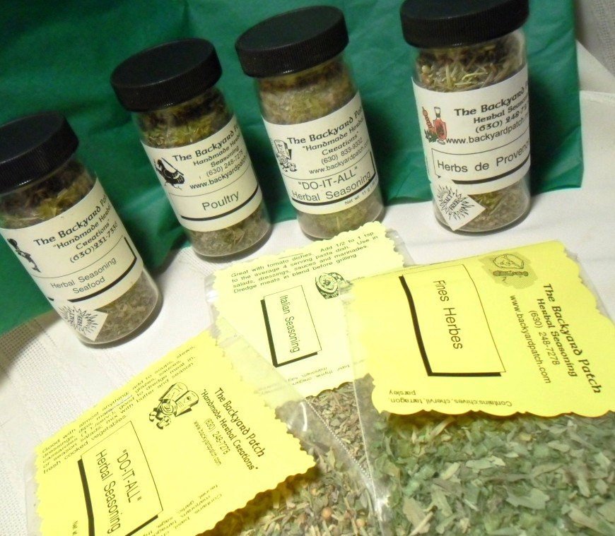 In addition to the 10 Seasoning blends, the Backyard Patch hand blends more than 39 different mixes of herbs used for creating salad dressings, dips, sauces, rubs, and flavorings for cheese and butter. We also make herbal teas, bath products and 30 other varieties of cooking herbs.