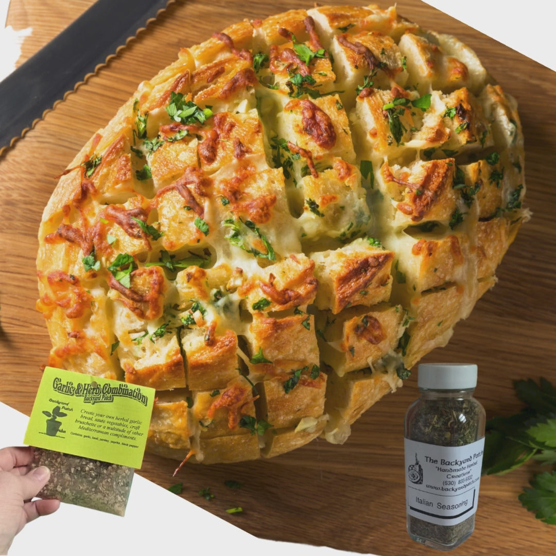 Whip up the best garlic bread ever—seriously. This zesty blend of basil, parsley, garlic, paprika, and black pepper is your shortcut to bold Italian flavor. Mix it into butter for garlic bread, stir into olive oil for bruschetta, toss with pasta, or add to tomato sauce for a knockout marinara. Bonus: it makes a killer marinade too (try the Grilled Bruschetta Chicken recipe included below!).