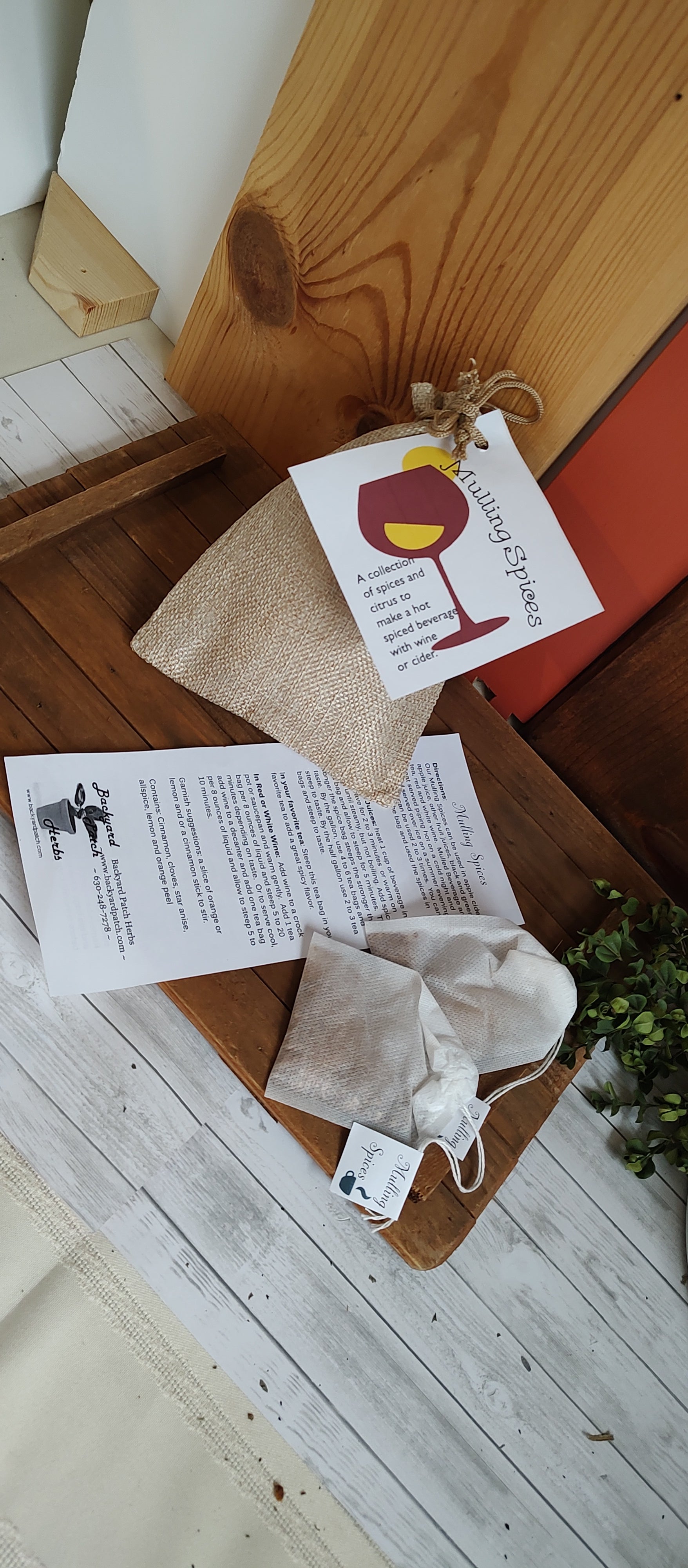 Mulling Spice Blend – Packed in four tea bags, it can be used to craft the perfect autumnal drink. Each tea bag can turn a quart of cider into a great smelling, good tasting hot drink. A special recipe is included for making mulled cranberry cider. Contains: cinnamon, lemon peel, orange peel, cloves, & nutmeg.