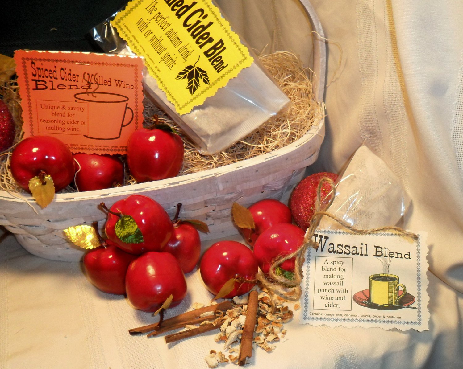Totally caffeine free naturally, these blends of spices and herbs can be used to spice cider, apple and other juices, tea, and wine or even as a simmering potpourri.