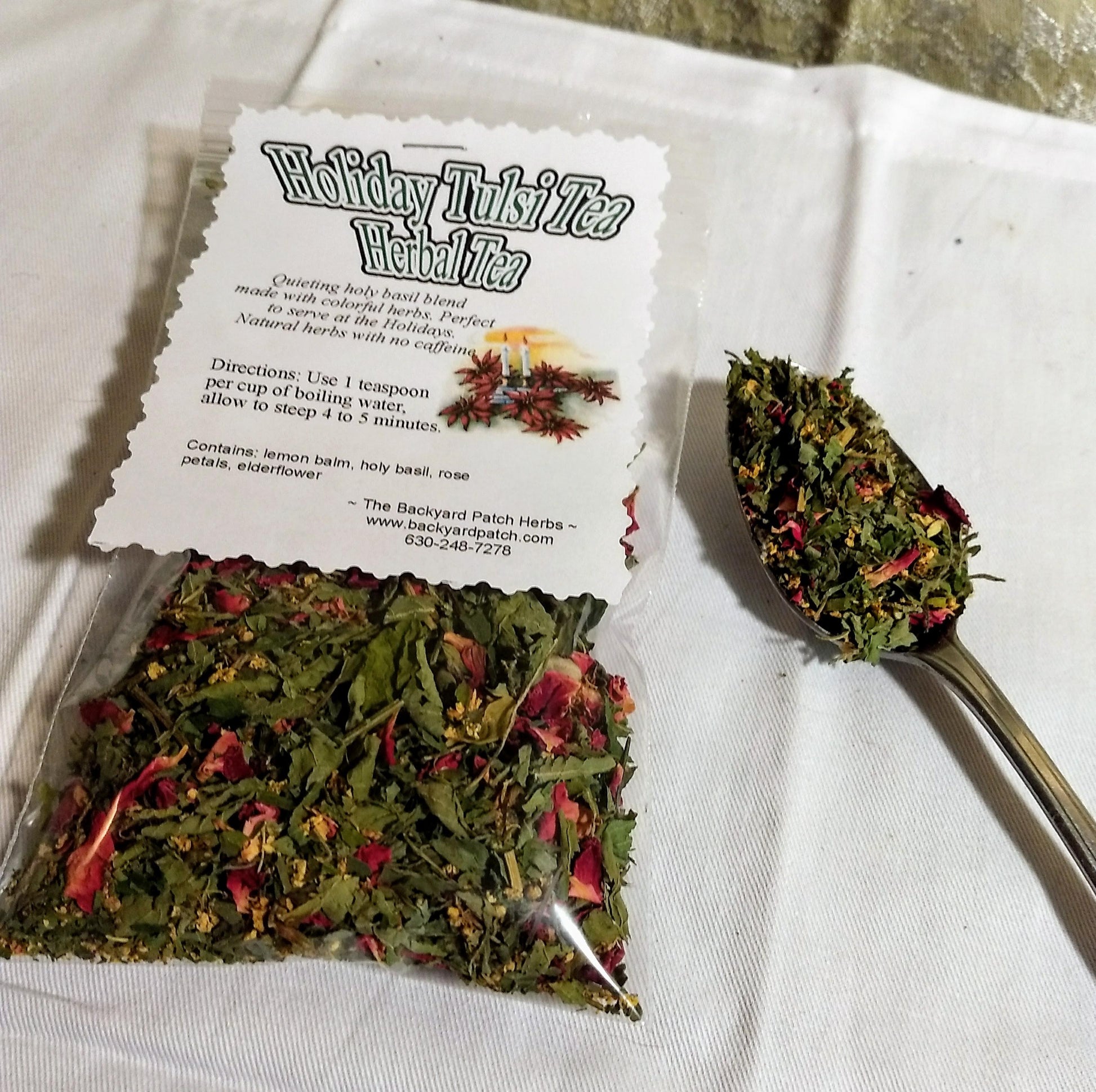 Holiday Tea Blend, Holiday Holy Basil Tea, Tulsi Tea, Lemon Balm, Elderflower, Rose petals