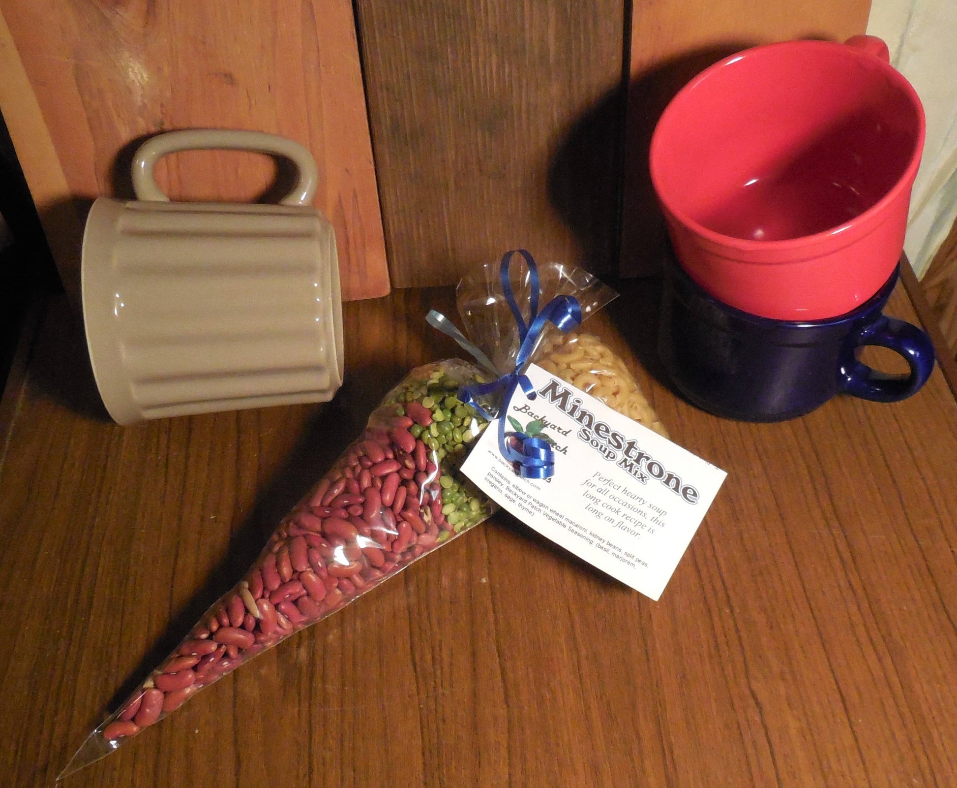 Soup Mixes made by Backyard Patch Herbs are a blend of dried natural ingredients (beans, pasta, etc.) and seasonings formulated to create a hearty soup that serves 4 to 6 people. Just follow the included recipe and add a few fresh ingredients for a perfect soup!